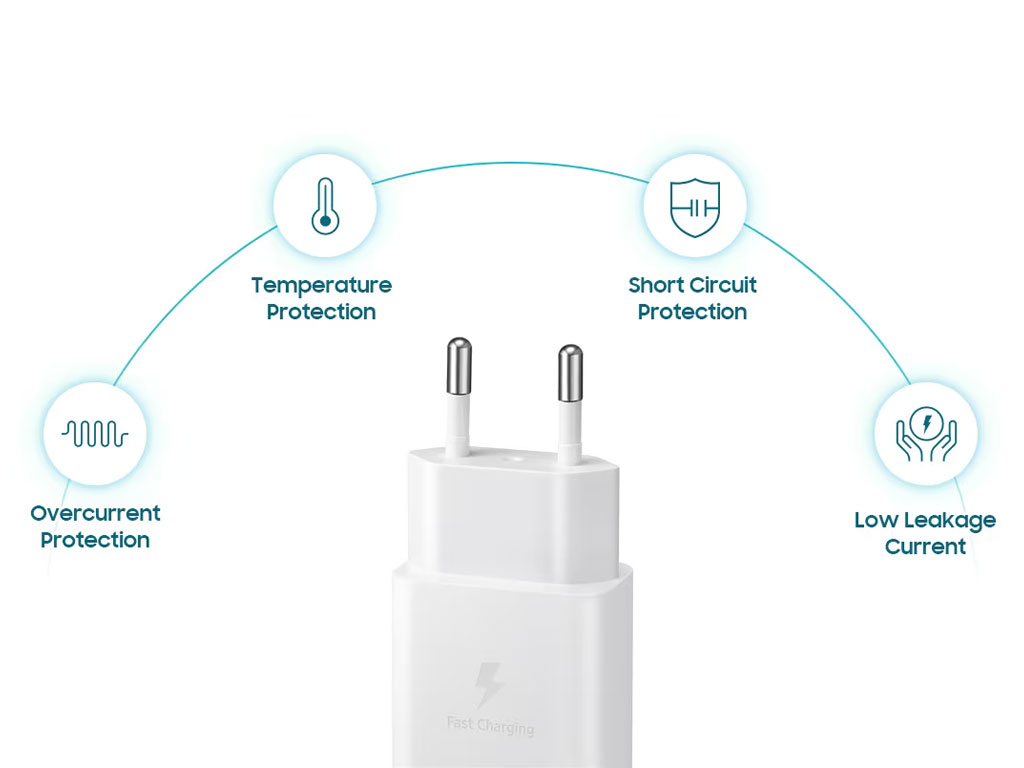 پایداری و سرعت با تکنولوژی Adaptive Fast Charging شارژر دیواری ۱۵ وات سامسونگ (مدل EP-TA200) استاندارد طلایی برای گوشی‌های میان‌رده و اقتصادی سامسونگ است. این آداپتور با بهره‌گیری از فناوری شارژ سریع تطبیقی، می‌تواند باتری گوشی شما را در کمترین زمان ممکن شارژ کند. هوشمندی این شارژر در این است که با رسیدن شارژ باتری به درصدهای بالا، جریان را به صورت خودکار کاهش می‌دهد تا از داغ شدن باتری و کاهش طول عمر آن جلوگیری کند.